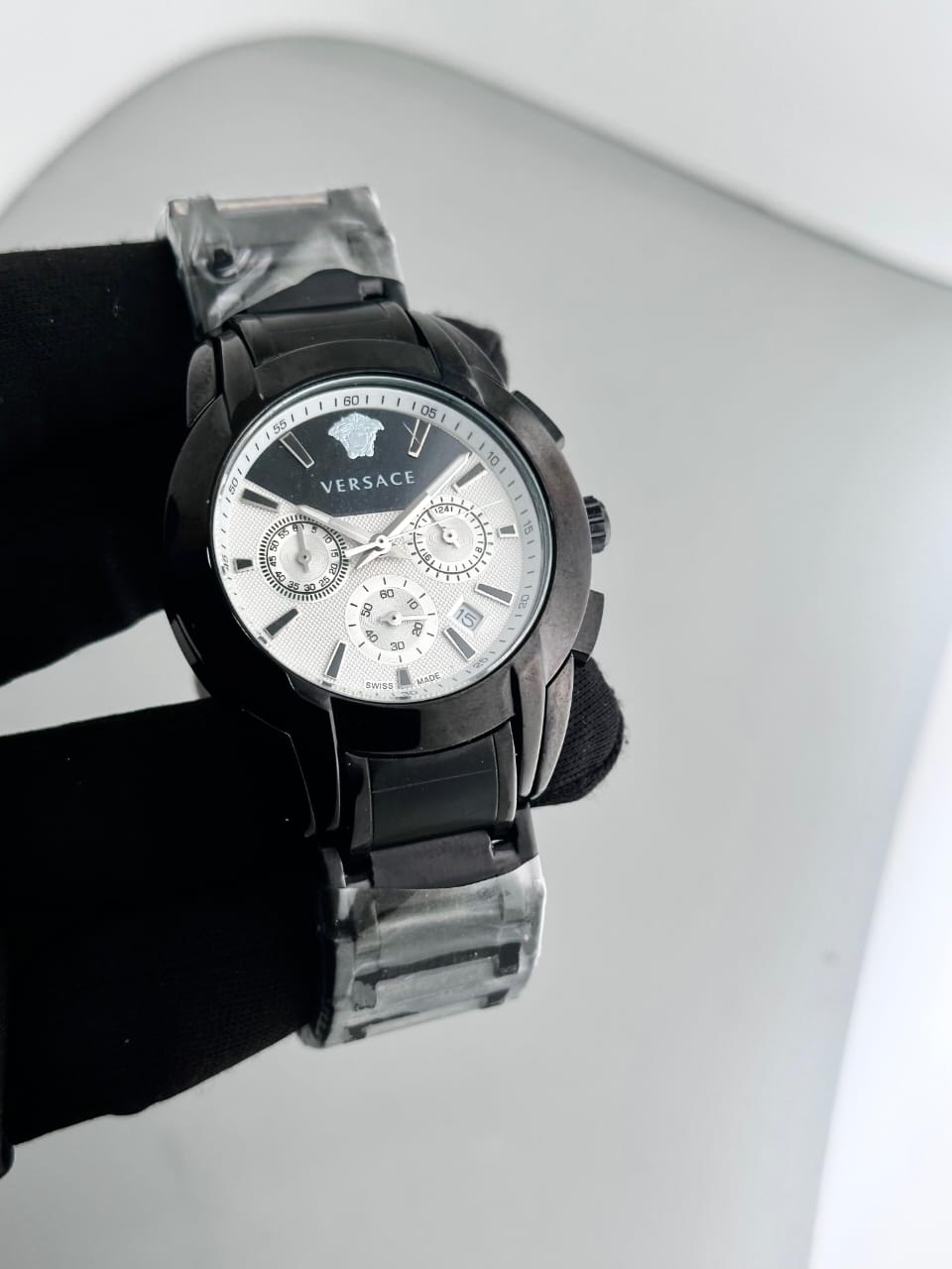 A bi-compax chronograph with a sporty but highly stylish attitude is the new Aion chronograph presented by Versace. Versace For Men 7AA Premium Collection Working Chronograph FORMAL AION WATCH FOR GENTLEMEN - Working Chronograph - Date Counter - 24 hour analog - Elegantly design with modern looks - stop watch chronograph machinery