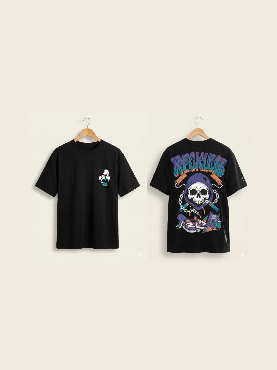 Product Details Level up your streetwear game with this edgy oversized t-shirt. Crafted from premium heavy-gauge pure cotton, it features a striking high-definition "RECKLESS" back print featuring a hooded skull and urban graffiti elements. Designed with a relaxed drop-shoulder silhouette for maximum comfort and style. Size & Fit Fit: Oversized / Relaxed Fit The model (height 6') is wearing a size M Material & Care 100% Pure Cotton Machine Wash Cold | Do Not Iron on Print Specifications Sleeve Length Short Sleeves Neck Round Neck Fit Oversized Fit Print or Pattern Type Graphic / Street Art (Back Print) Length Regular Fabric Type Pure Cotton Main Trend New Basics / Streetwear Occasion Casual / Night Out Transparency Opaque Number of Items 1 Package Contains 1 T-Shirt Net Quantity 1
