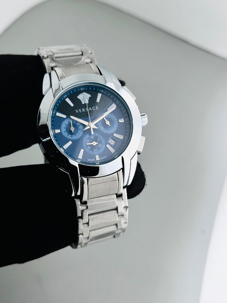 A bi-compax chronograph with a sporty but highly stylish attitude is the new Aion chronograph presented by Versace. Versace For Men 7AA Premium Collection Working Chronograph FORMAL AION WATCH FOR GENTLEMEN - Working Chronograph - Date Counter - 24 hour analog - Elegantly design with modern looks - stop watch chronograph machinery